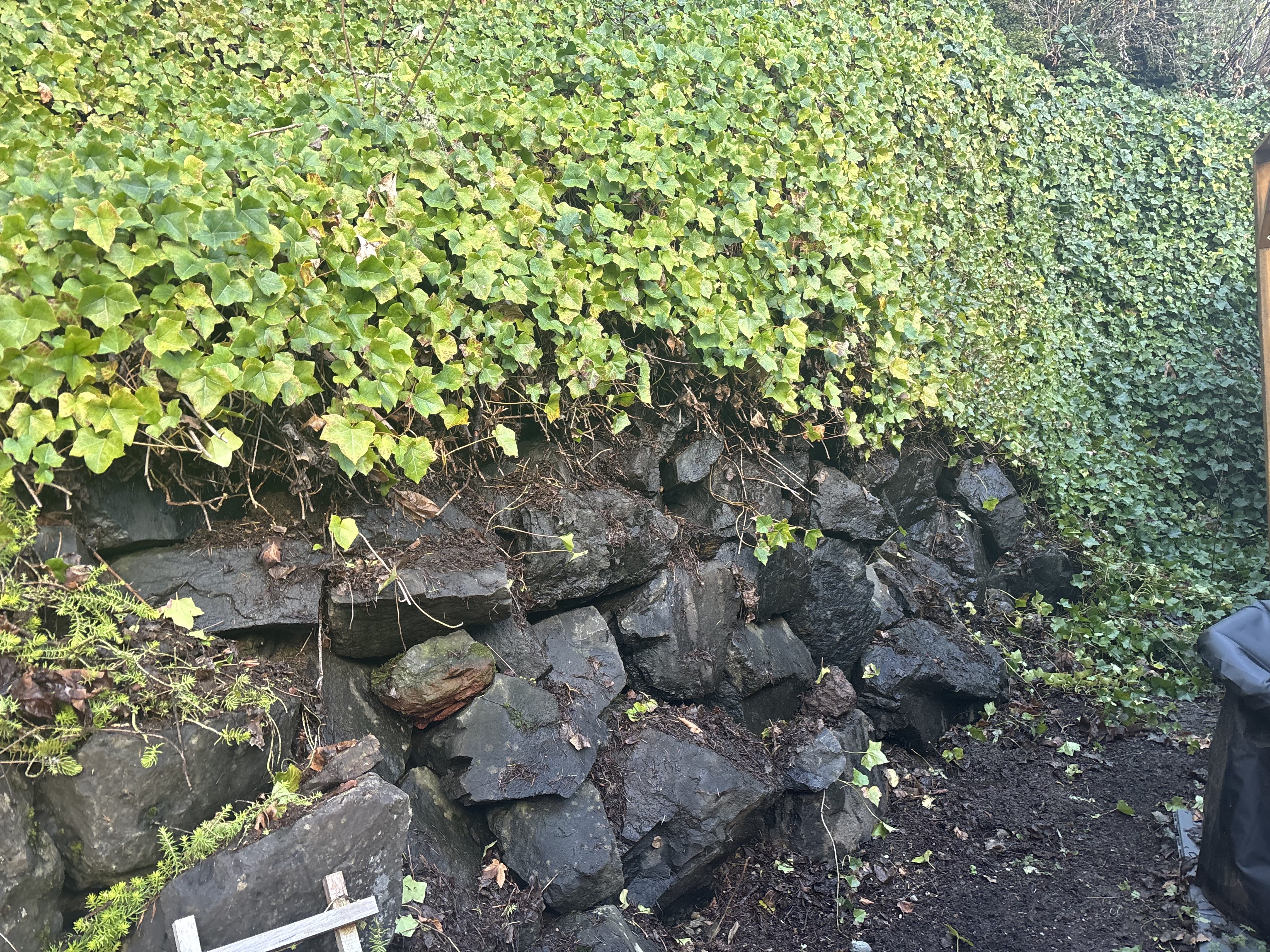 The second known challenge is English ivy. Like the blackberries, they are running all through the back area out of the forest behind my house, growing into the north side of the house. I cut the stuff back near the house last fall, but it wasn’t nearly aggressive enough. The blackberries and the ivy have an unholy and very prickly alliance that is problematic, especially around the house and the heat pump. I have begun a more intentional approach to cutting the ivy back from those areas. My current limiting factor is the capacity of my yard waste container. Over the last couple of weeks, I’ve donned head-to-toe coverage and heavy-duty gloves to protect myself from the plant’s skin-irritating oil, and made significant progress. I still have to rake out the cleared areas from stray leaves so they don’t root and propagate.